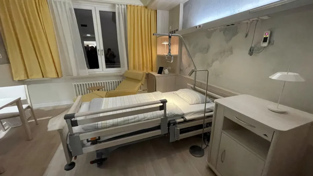 Sehr glücklich ist das Team der Palliativstation indes über die gelungene Ausstattung der Zimmer, die so gar nichts von der üblichen Krankenhaus-Atmosphäre verbreiten. In sanften Farben sind sie gestaltet, es gibt Platz für Angehörige, die oft viele Stunden am Tag am Bett ihrer Liebsten verbringen. Es gibt zusätzlich eine Terrasse, auf der sich Patienten und Angehörige aufhalten können, fern von neugierigen Blicken. Zum Angebot gehört zudem ein speziell ausgerichtetes Badezimmer und eine Küche mit angeschlossenem Wohnzimmer. Finanziert wurden diese Extras von Spendern, die sich für die gute Sache engagieren wollen.